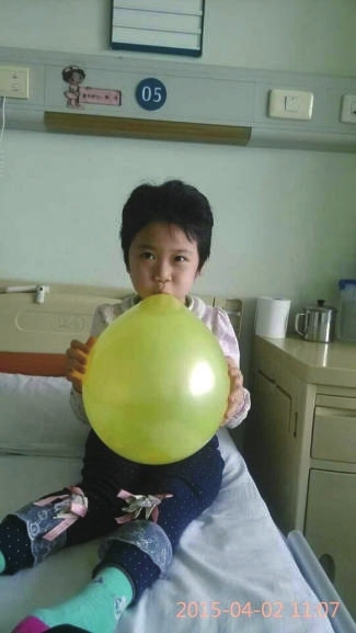 此外,因入院时思思的身体素质较差,在医生的要求下,她每天都会坚持上下楼梯和吹气球进行锻炼。“刚来的时候上一层楼梯休息一下,现在上三层休息一下。”蔡超表示,而所有锻炼中,思思最喜欢的是吹气球。起初,一个气球,她很难一口气吹起来。现在经过锻炼,她一口气能将气球吹得很大。
