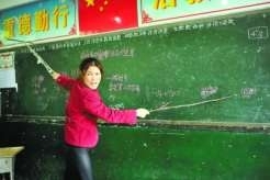 朱幼芳是湖北省大冶市陈贵镇上罗学校老师,3年前被查出患有脊髓小脑性共济失调症,学校让她放弃讲台,她毅然拒绝。她一边治疗,一边坚持上课。黑板左上角钉着一根铁钎,一根白色的绳子从上垂下,朱幼芳左手拉着绳子,右手板书,凭借一根“拉力绳”平衡身体,用独特的姿势,为38个孩子授课,坚守三尺讲台至今。 (湖北教育新闻网)