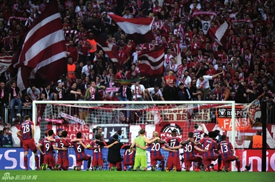 比赛结束之后上演了动容一幕,拜仁球员排成一队来到南看台,那里是死忠球迷阵营,他们并排双膝跪地以这样一种特殊的方式向球迷表达了感谢。托马斯·穆勒跑向球迷围栏,抢过扩音器,用他极富煽动性的动作和语言与球迷共庆晋级欧冠四强。