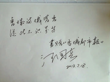 汪国真还寄语咸宁:“咸宁山水秀美,香城历史悠久,泉都风俗迷人,无论从哪一方面来说,都值得让人来一次。希望咸宁人民能珍惜今天的生活,爱护自己的环境,发扬自己的文化,让香城香飘四海,走向美好未来。”