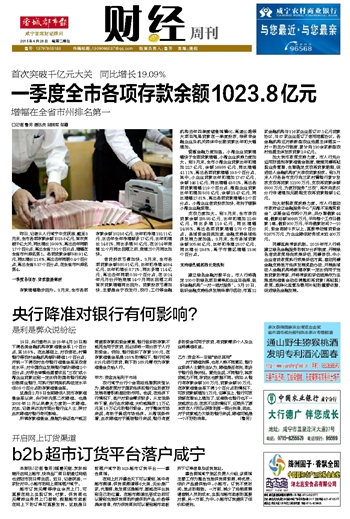 一季度全市各项存款余额1023.8亿元