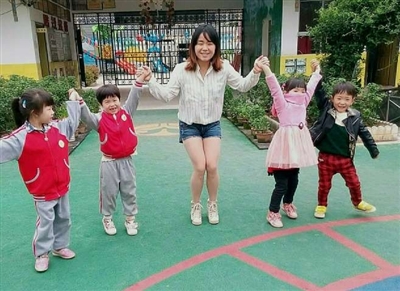 2005年,陆蓉从幼师专业学校毕业,就进入咸安区桂竹幼儿园成为一名幼儿教师。她最快乐的事情就是和孩子们在一起,陆蓉说:“和天真无邪的孩子们在一起,我会感到特别开心,他们每一双眼睛都是那样透彻明亮,我爱这些孩子们。”当她走进教室时,孩子们都欢快的跑过来,围着她争先恐后地喊着:“陆老师!陆老师!”这时,陆蓉的脸上露出甜蜜的笑容,既美丽又亲切。她站在孩子们中间,欣然一个孩子王,“陆老师我做了一个风车”,“陆老师我画了一朵花”,“陆老师来和我们一起玩”,“陆老师……”,陆蓉立刻和孩子们融合到了一起。