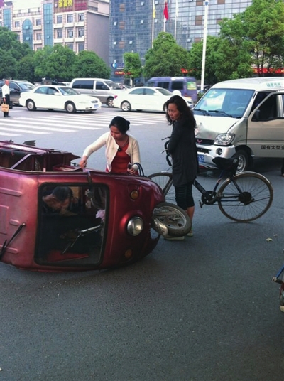 近日,有网友在百度咸宁吧发帖《我为温泉街头车祸现场的红裙女子点赞》。帖子称,5月10日下午5时许,滨河东路与咸宁大道交汇的红绿灯处发生了一起车祸,一辆三轮车被一辆面包车撞翻。一过路的红裙女子及时伸出援手,扶起了倒地的三轮车司机。