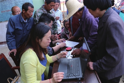 年检现场,该中心工作人员热心耐心服务群众,并积极宣传人社政策,解答村民相关咨询。该中心的“上门年检”和人性化、亲情化服务,受到当地群众一致好评。(图为在花坪村年检现场) (通讯员吴菲)