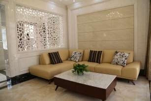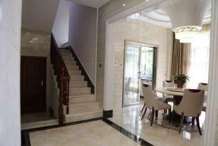 在装饰手法上,孙先生家与一般家庭就有不同之处。玄关、客厅、厨房、卧室所有的活动区域的门框都是用大理石做装饰包边。“家里的台面、门框、大理石雕花、台阶、踢脚线等都是运用的大理石,空间内用大面积的大理石铺设,都是为了让空间达到统一整体的色调效果。”星艺装饰设计师邱立立介绍道,欧式居室有的不只是豪华大气,更多的是惬意和浪漫,大理石简单、完美的线条,能带给家人舒服的触感,和谐才是简欧风的最高境界。