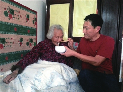 母亲在一旁静静听完儿子的讲述,咯咯笑起来,幸福地告诉记者:“孩子们很孝顺,现在我的日常起居都是他们来照顾。梳洗、吃饭、倒痰盂……都是我儿子和媳妇包办。”
