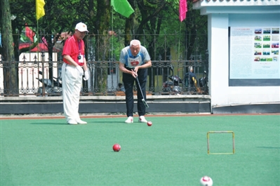 昨日,湖北省公安机关离退休人员第二十二届门球赛在市老干部活动中心开赛。来自省厅、湖北警官学院及各市州的15支代表队近150人齐聚香城,展开为期两天的精彩角逐。 (毛亚轩/摄)