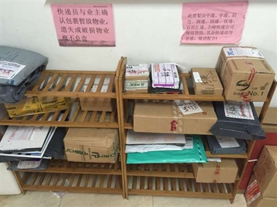 城区一小区物业负责人称,现在网购盛行,业主没时间来取件时,确认之后,会让快递员把快件先存放在保安室和物业办公室,代收快件已成物业公司日常工作。