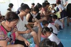 幼儿表演,家长感言,将家长们从感伤的画面中带出来。对于即将步入小学的学生们,老师们特意安排了感恩互动环节,让幼儿给家长洗脚。一双双稚嫩的小手在爸爸妈妈的脚趾间擦洗,虽然动作很笨拙,但家长们脸上的泪水是幸福的。父母与孩子耳语,不知从哪个角落传来一对母子抽泣的声音,随之哭声洒遍全场,老师们也被现场的气氛所感动。