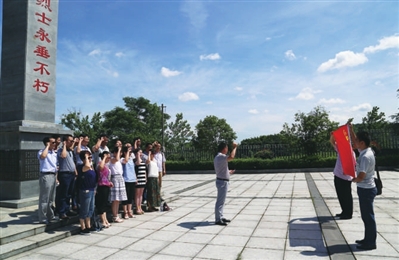 在烈士纪念碑前,党员干部面对鲜艳的党旗高举右手,重温入党誓词。随后,在2008“感动中国”十大候选人、“全国十大真情人物”、2009“湖北省道德模范”余法海的带领下,党员干部参观了烈士陵园和纪念馆,思想和灵魂接受了一次洗礼。 (方达星 廖朝阳)
