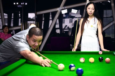 余佳希的客人一般以年轻人居多,他们来球房中找陪练,有的是想提高台球技巧的,有的也因为是一个人来玩,想找个伴儿一起打球。“不管客人水平怎么样,我都要跟随他们的节奏来打。”余佳希说,在陪客人打球的同时也提高了自己的水平。