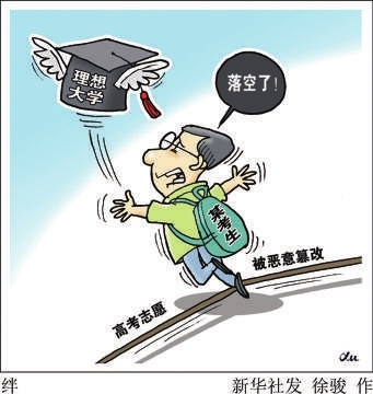 志愿被他人篡改,给考生造成的人生遗憾谁能弥补?据记者了解,目前我国法律法规尚无专门针对违背学生意愿、篡改高考志愿的法律责任的规定,也没有可借助的纠错机制,实践中只能采取“一事一议”、“特事特办”的做法。