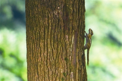 本报讯 (记者赵忠志)近日,在城区潜山国家森林公园广场,一只疑似松鼠的小动物在树上嬉戏觅食,上蹿下跳十分活跃,记者通过相机抓拍到这一画面。
