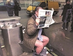 ②透明厕所 这个厕所只能从里面看外面,有心理障碍的人可能受外面走来走去的人影响,用报纸遮住脸或许是个好办法。