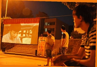 临近黄昏,广场上人头攒动,热闹非凡,村民们早早地来到这里,谈论着今晚要放映的电影。19时左右,伴随着荧幕地亮起,一场电影盛宴正式开始,现场瞬间便安静了下来。昏黄的灯光下大伙围坐一起,时不时有人手拿蒲扇驱赶蚊虫。这就是电影进乡镇的一个缩影。