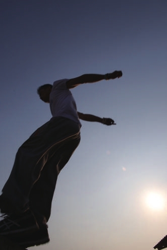 3米高的围墙,4米高的屋顶,一个助跑,便能轻松飞过。在雷文臣看来,玩跑酷不光是新潮,更因为它无拘无束、刺激、自由而奔放。