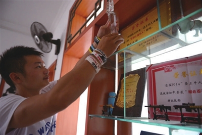 去年,雷文臣带领他的队伍参加咸安区牛人比赛,一路过关斩将,挺进了2014年垄上牛人全国七强。“我相信只要努力拼搏,没有做不好的事。”看着一墙的奖牌,雷文臣一脸满足。