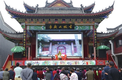 11日下午,香城古街大戏台上演的楚剧吸引了大批市民游客前往观看。据了解,楚剧大汇演从9月30日至10月14日每天下午或晚上演出,以后每周还有京剧演出,增加各地民俗文化,免费为市民文化节奉上文化盛宴,成为古街里一道独特的风景。
