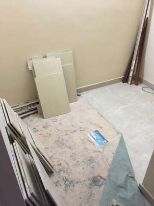 今年4月底交房,杨先生领了钥匙,上个月,他请工人到家里安装了雨棚。10月11日,他从武汉来到自家别墅,打算把房子收拾一下,过几天准备搬新房,可当他打开房门后却惊讶地发现,家里的地板上堆放着许多瓷砖等杂物,楼上楼下五个卫生间的地板砖被撬开(如图)。