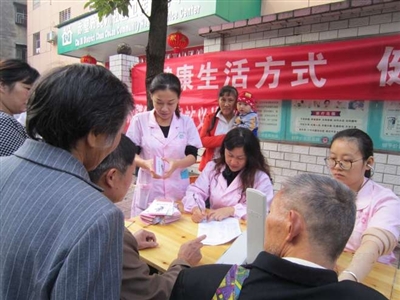 活动当天,该社区卫生服务中心组织在医院大门口设立宣传点,建立流动测血压点,免费为居民测量血压、测血糖,免费指导居民自测血压等。