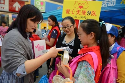 本报讯(记者吴青朋)昨日,在市区中百仓储咸宁购物广场等人流密集地带,300个身穿“爱心小天使”红色马甲的小身影在熙熙攘攘的人群中,格外引人注目。原来,他们正通过义卖为特困儿童募集爱心款。