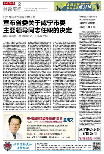 宣布省委关于咸宁市委主要领导同志任职的决定
