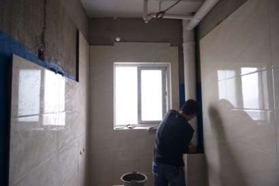在施工工艺方面,陈先生家在地面工程施工过程中,室内地面所用石材为磨光的板材,使用薄板和1:2水泥砂浆掺107胶铺贴。铺贴完成后,施工工人不仅将基层处理干干净净,而且在有高低不平处对其凿平、修补, 且用水湿润地面,整体施工工艺流程细致有序,为后期空间装饰省下了不少功夫。不仅如此,厨房、卫生间墙面砖统一采用瓷片玻化砖进行瓶贴,施工工人在铺贴地砖前,细致地将瓷砖浸泡在水中一段时间后,让瓷砖自然阴干,随后再进行铺设,将装饰前的工艺做到极致,让施工工艺邂逅简约家居。