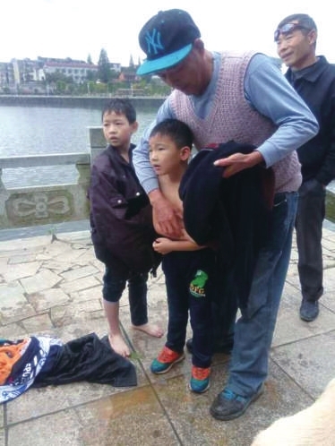 记者从该网友配发的现场救人图片上看到,一名男子在水中用力将两名儿童推上岸边(图一),闻讯赶来的市民帮忙将两名儿童拉上岸,一名带着帽子的大哥将两名儿童浑身湿透的衣服脱下来,换上自己的外套(图二)。而爬上岸边的救人男子(图三),看到两个孩子平安无事后,穿着浑身湿透的衣服和鞋子悄然离开。