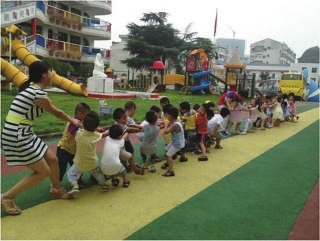 本报讯(记者夏咸芳 通讯员朱珊) 攀岩、拔河、毛毛虫……每周周三周四周五,在咸宁市交通实验幼儿园,总能看到这么一幅快乐的场景,户外活动的孩子们在年轻帅气的男老师带领下,快乐演绎着各种系列体能训练,在轻松的零距离互动中感受到了“体智能”课程的魅力。