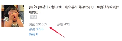 本报讯 (记者石丽丽)别人晒寒流,我们晒“笑脸”!23日晚,香报微信公众号发布《老板任性!咸宁菲布瑞自助烤肉,免费让你吃到扶墙而出!》一文,迅速在朋友圈刮起了“笑脸风”。截至昨晚18时许,该篇微信文章阅读量破10万,文章下方评论近2000条(50条为显示上线)。