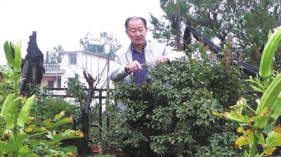 今日,金良平已经退休了,但是,他仍然徜徉在盆景艺术创作的广阔天地间。年龄老了,心却没老,他仍然容光焕发,谈起他热爱的盆景艺术事业笑容满面。但愿他因为盆景艺术而青春不老,相得益彰。