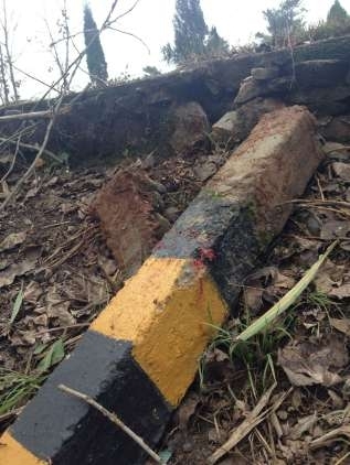 昨日上午,根据民警的提示,记者来到嘉泉线(神山镇埠头村附近)事发现场看到,虽然当晚下了一场雨,路边依旧残留了一滩血迹,一把已经损坏的雨伞、一根撞断的水泥防护栏杆掉在路边下的草丛里,栏杆上同样留有清晰地血迹。