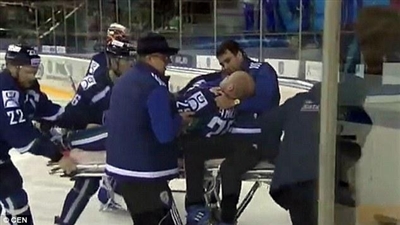 本报综合消息 近日在俄罗斯冰球大联盟举行的一场比赛上,一位名叫维塔利-西特尼科夫的球员被对手的冰刀刺穿喉咙,鲜血飞溅。好在被及时送往医院救治,保住了性命。