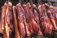 【鄂南腊肉】 熏好的腊肉,表里一致,煮熟切成片,透明发亮,色泽鲜艳,黄里透红,吃起来味道醇香,肥不腻口,瘦不塞牙,不仅风味独特,而且具有开胃、去寒、消食等功能。