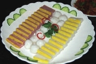 【赤壁鱼糕】 以鲜嫩、柔滑、绵软的独特风味,成为一种及其地道的珍馐佳肴。赤壁鱼糕清淳自然、皮黄肉白、不油不腻、酥软醇香,是赤壁人迎宾待客时第一道上桌的大菜。