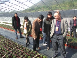 近日,通山县政协组织13个乡镇政协联络处主任等50余人,专题传达学习了十八届五中全会精神。同时,为推进全县精准扶贫工作,视察了大畈3000亩油茶基地,400亩樱花园等精准扶贫基地。图为与会人员在大畈镇视察铁皮石斛等名贵珍稀中药材。