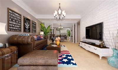 马女士家用光滑无纹的宁静代替了美式风格的奢华、辉煌,选用几何造型的吊顶和没有太多装饰的墙角装饰,给家中增添了许多简约的气息。值得一提的是,设计师还巧妙的用乳胶漆将每个区域划分出不同的色彩,客厅里咖啡色乳胶漆搭配简单的仿古砖,配上美式独特的家饰,给人一种独特的天然气质。