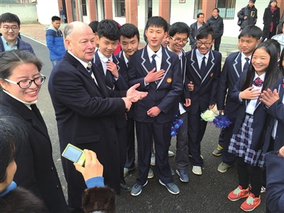 昨日,咸安区横沟高中与莫斯科国立大学签订友好合作协议,成为继河北、陕西之后,全国第三个与莫斯科国立大学合作的中学,走在全省前列。图为莫斯科大学校长助理叶甫盖尼与俄语班学生亲切交流。 镇强/摄