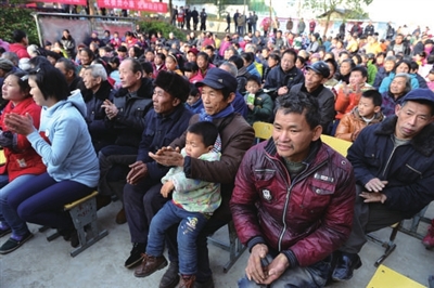 上午11时许,在操场正中央,一场为村民精心打造文艺演出正式拉开序幕,精彩的歌舞极大地鼓舞了村民打赢脱贫致富的士气。