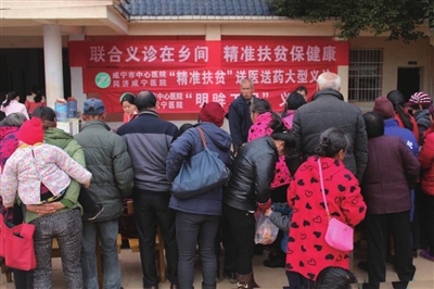 本报讯 (记者夏咸芳 通讯员秦桂芳 陈宣名)天气寒冷,可是通山慈口乡百姓们的心是热呼呼的。为了更好地贯彻市委市政府”靶向施策、精准发力”的扶贫开发工作精神,12月29日上午,咸宁市中心医院 同济咸宁医院泌尿外科、肝胆胰外科、内分泌科、眼科、妇科、创伤骨科、超声影像科等学科主任组成的专家医疗队,在通山慈口乡政府举行“精准扶贫送医送药大型义诊”活动。