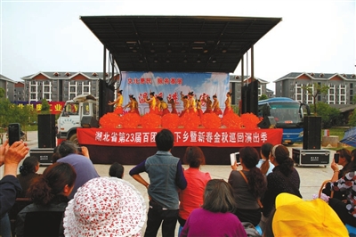 2015年4月1日,嘉鱼县陆溪镇藕塘村热闹非凡。市歌舞剧团精心准备的十三个歌舞小品节目,给前来欣赏的500余村民带来了一场文化大餐。精彩的演出,让意犹未尽的陆溪镇党委书记华红诚挚邀请剧团多留一日,为村民再进行一场演出。虽然市歌舞剧团最终辗转到其他村镇演出,但考虑到藕塘村村民们平时的文化生活贫乏,剧团于次日早上6时许再次出发,赶了3个小时的车程,再次来到藕塘村,为村民们再次台前献艺。