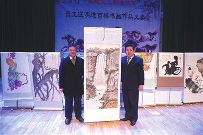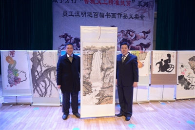 困难排除之后,汪明进夜以继日地创作出了107幅字画,并赶在春节前夕进行义卖。