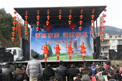“快点快点,广场上面有节目表演,赶紧来。”26日,咸宁核电有限公司组织“美丽家园·情系核电”大型民俗文艺晚会,走进通山县大畈镇大坑村和官塘村两个移民安置点,引得村民奔走相告。
