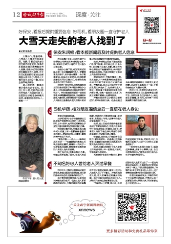 大雪天走失的老人找到了