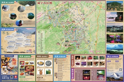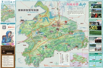 | 翻到地图背面,您会看到精美的市区手绘地图,此外,咸宁必做事,为您罗列咸宁旅游最佳体验,自驾游攻略,多条线路带您玩转咸宁,还有地道美味、首选特产、舒适宜居、文化瑰宝、精彩大剧、实用信息,六大专题为您全面解析吃住行游购娱等实用资讯,让您轻松畅游!另外,在地图封底还有惊喜呦!免费下载“问问壹旅游”,对着嫦娥拍一拍,就能一睹女神芳容! |