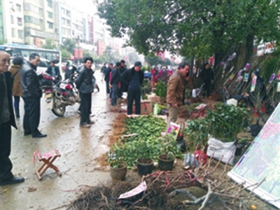 2月11日(正月初四),记者在嘉鱼县茶庵苗木市场看到,前来买苗木的人络绎不绝。