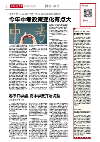 据了解,目前我市有普通高中学生43000多人,执行新学费标准的高一学生有13000多人。其中我市省级示范(重点)普通高中和市级示范(重点)普通高中有鄂南高中、各县市区一中、青龙山高中、通城二中,这些高中的高一学生春季开学将按照每学期900元的标准执行;其它普通高中高一学生将按照每学期630元的标准执行。