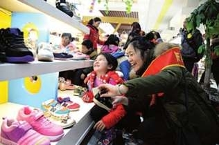春节期间,通城雨露爱心人士将13名乡镇失亲儿童接到县城购买衣服、鞋子、书籍和学习用品等,让他们开心过年。 特约记者 刘健平/摄