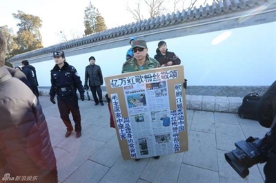 一位男子手持纸板,上书“阎肃老师,我们想您”,表情极为沉痛,还有一位悼念群众甚至因为悲伤过度当场晕倒,幸好有救护车及时赶来。