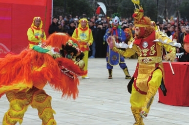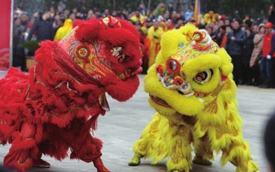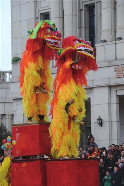 舞狮表演更是引来阵阵叫好声。台上队员精神抖擞,台下观众呐喊助威,场面十分热闹。会场旁的观众不仅可以一饱眼福,而且可以参与猜灯谜活动,1000条灯谜让人目不暇接、乐在其中,猜对了的观众都获得精美礼品。